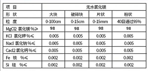 二、98%無水氯化鎂在裕澤生產無水氯化鎂廠家的分類及98%無水氯化鎂價格